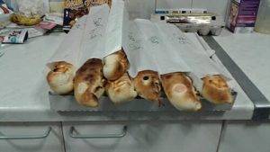 200g ball of dough for the Dog’s, 100g ball of dough for the Pup’s. Roll out into a rectangle about 500mm x 150mm for Dogs & 300mm x 150mm for Pups.