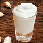 2 Do this slowly and as the oil finishes the garlic dip will fluff up. Remove and serve cold.