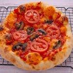 5 Gently press the dough balls into 2 round 10 to 12-inch pizza crust. Pinch together any tears in the dough.