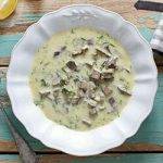 6 Remove from the heat and add the combined milk and reserved 1 cup of cooking liquid in a slow, steady stream, whisking constantly to avoid the sauce becoming lumpy.
